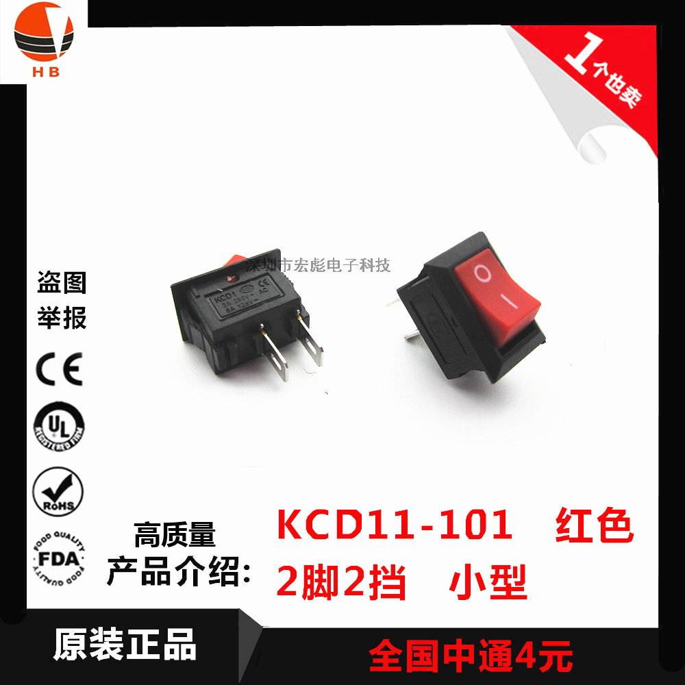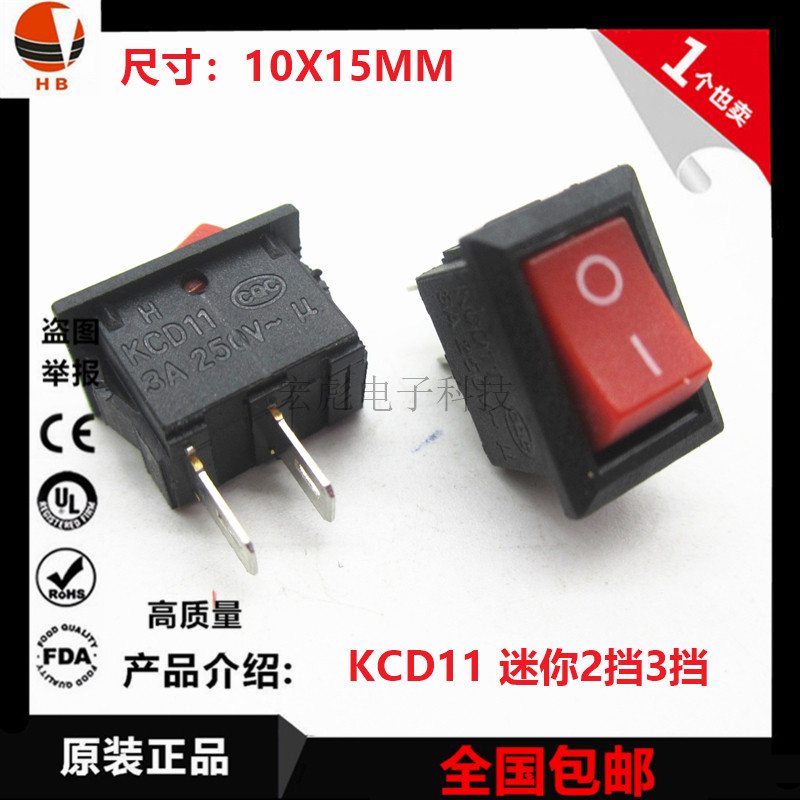 Переключатель типа корабля KCD11-101 Небольшой переключатель изогнутой панели Красный 2-футовый 2-футовый шестерен 3A/250 В 10*15 мм