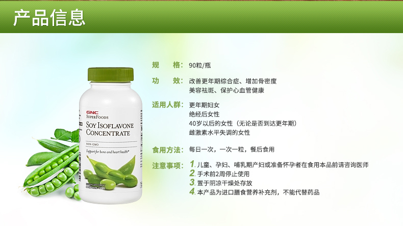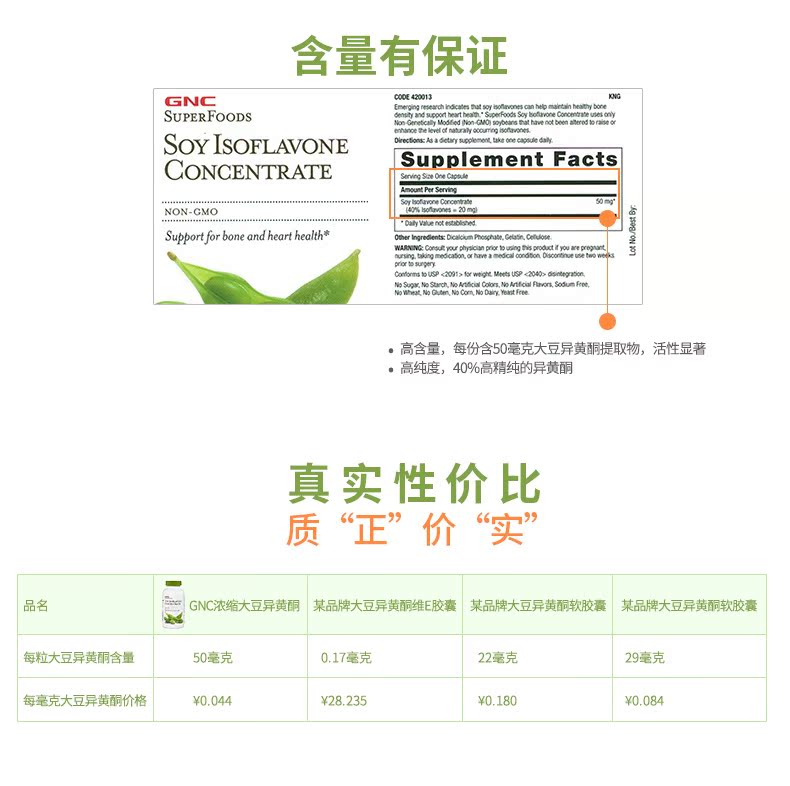 [Официальный прямой оператор] GNC Jiananxi Импортированные соевые экззики капсулы капсулы эстроген 50 мг*90 женщин