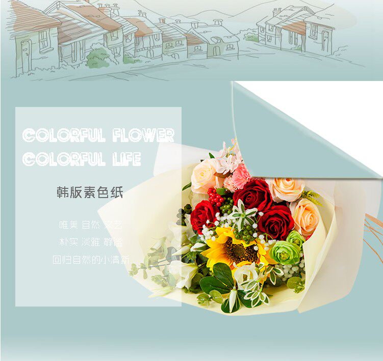 Han Suo Paper Mist, корейская чистая бумага Han Suo Genrino Paper High -Agrade Водонепроницаемая цветочная упаковка бумага Букета