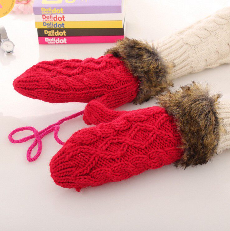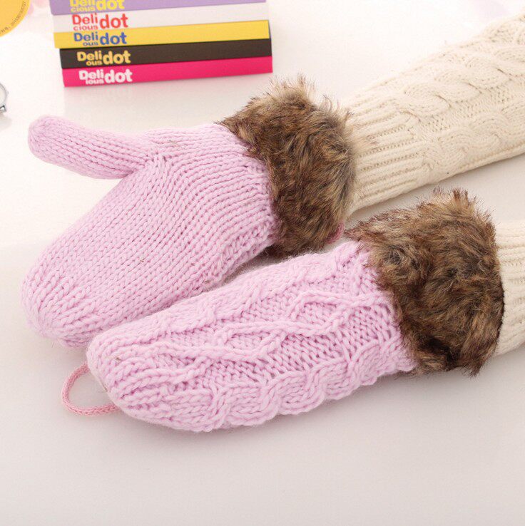Утепленные удерживающие тепло брендовые шерстяные перчатки, зимний милый универсальный трикотажный комплект для школьников и студентов с косичкой