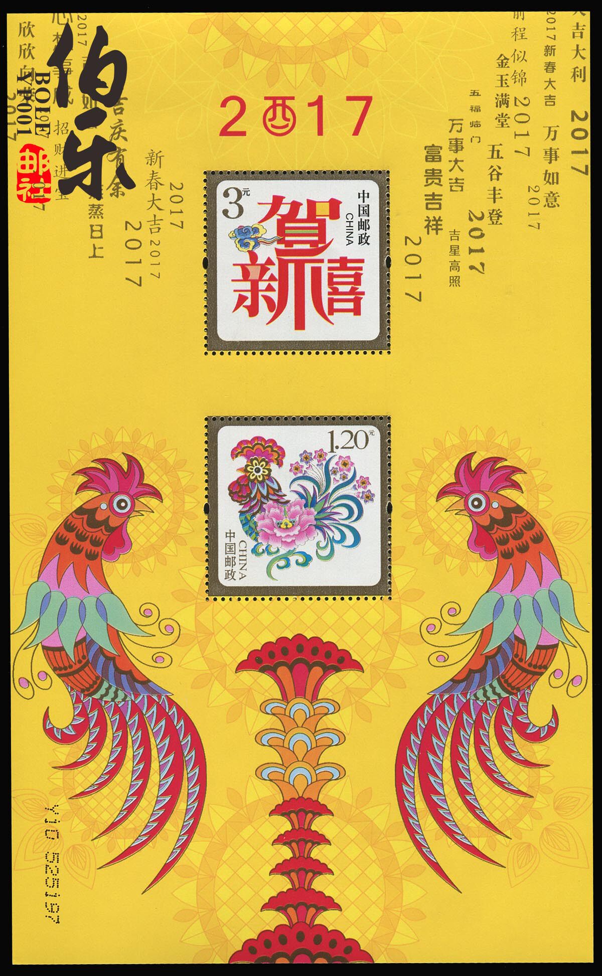 Поскольку название штампа является богатством и благоприятной, это был годом «Петух в Китае» в 2017 году, этот маленький Quanzhang также является первой маркой из China Post, который использует таблицу зодиака в качестве марки.