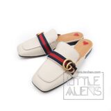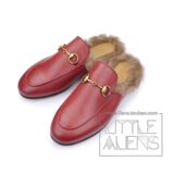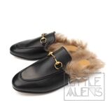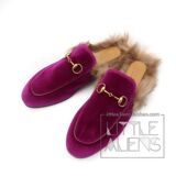 Бархатные меховые тапочки Gucci с квадратным носком и двойным узором GG Horsebit и жемчугом