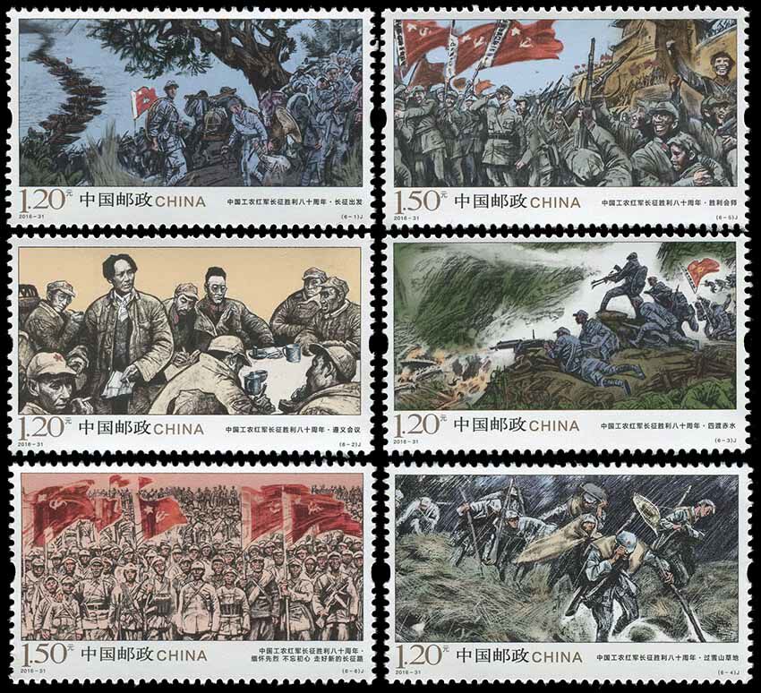 China Post планирует выпустить 6 комплектов памятных марков для 80 -летия 80 -й годовщины победы Длинного марша китайских рабочих и крестьян Красной Армии.Подробности следующие: