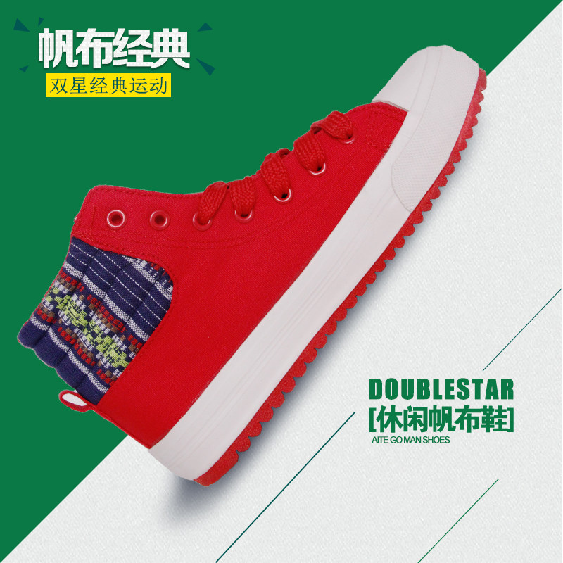 [Выгодное предложение] Высокие парусиновые туфли Double Star, новая весенне-осенняя женская повседневная обувь в корейском стиле, кроссовки, тканевая обувь для студентов