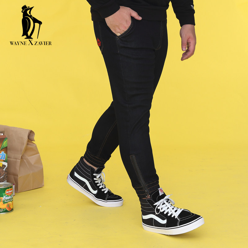 Модные мужские брюки Wayne Xavier с манжетами больших размеров, эластичные джинсы 4235