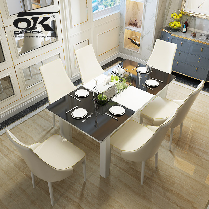 Это может быть хороший современный минималистский обеденный стол и стул Комбинированная 6 -личная складное стол