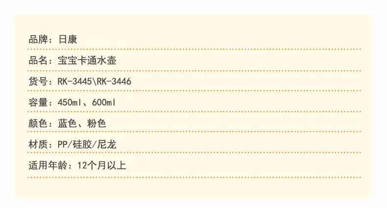 日康 Детский мультяшный чайник, портативные детские подтяжки, трубочка, стакан