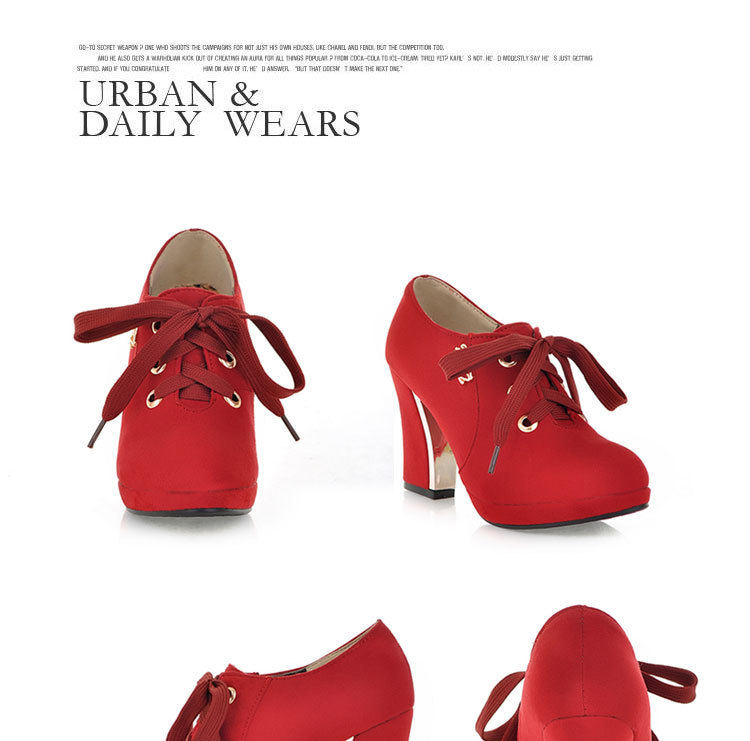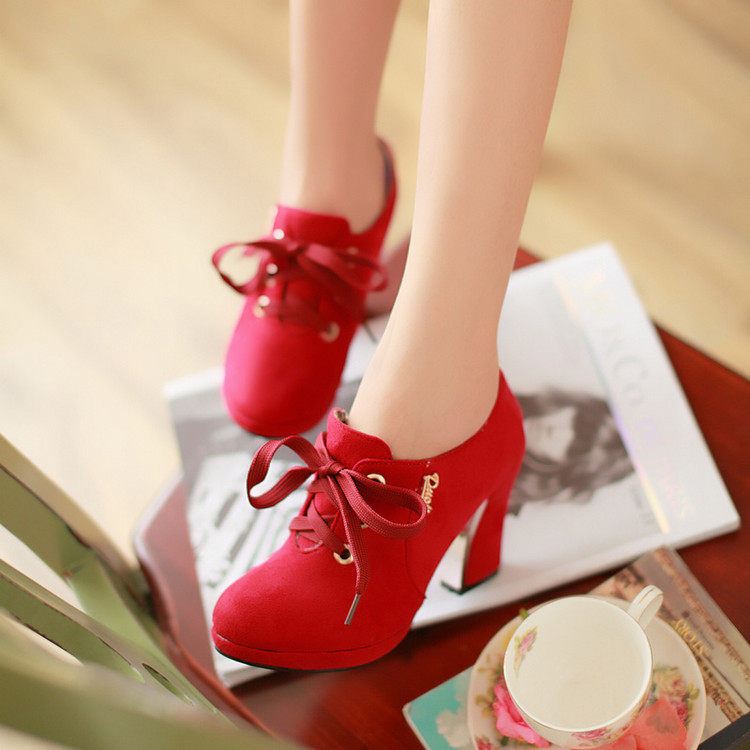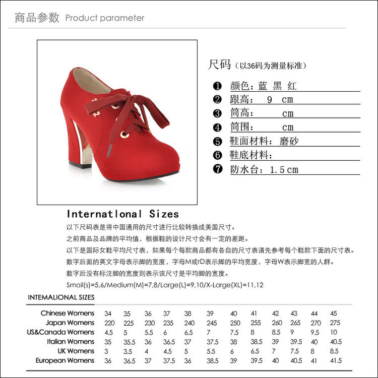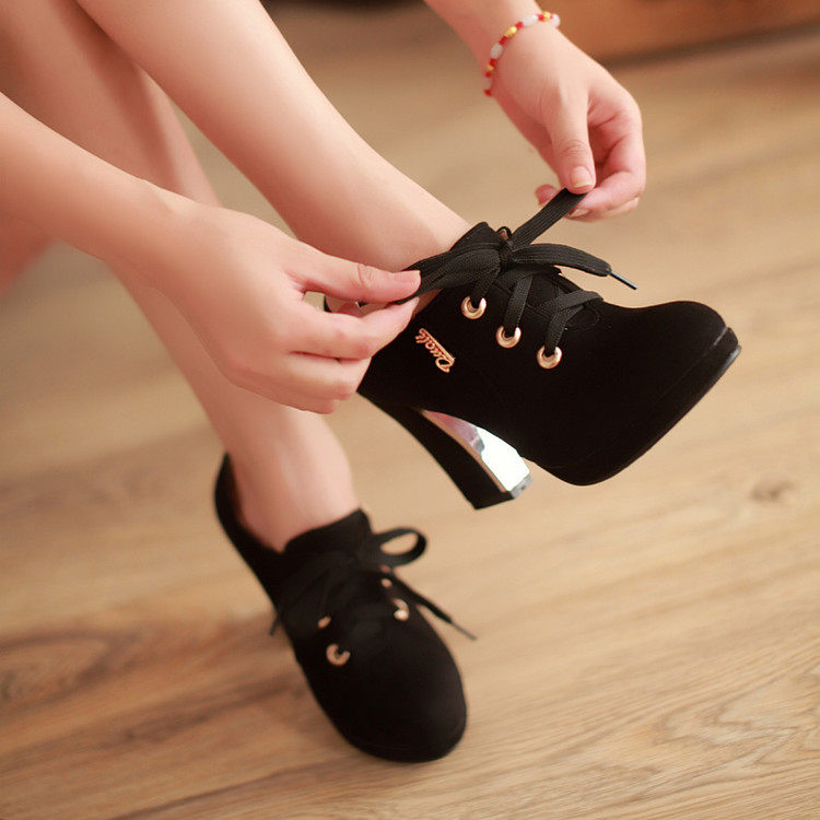 2016 корейский стиль, толстый высокий каблук, непромокаемая платформа, высокие каблуки, новые женские туфли большого размера на толстом каблуке, весенне-осенние женские туфли на шнуровке