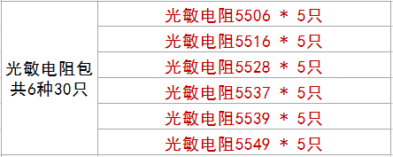 Компонентный пакет Photoresistor Package 5506 5516 5528 5537 5539 5549Всего 6 типов, 30