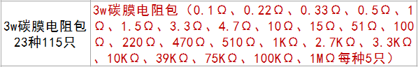 Компонентный пакет 3W Углеродная пленка Пакет 0,1 Ом-1M Обычно используемый сопротивление 23 вида, 5, каждый 115, в общей сложности 115