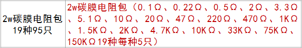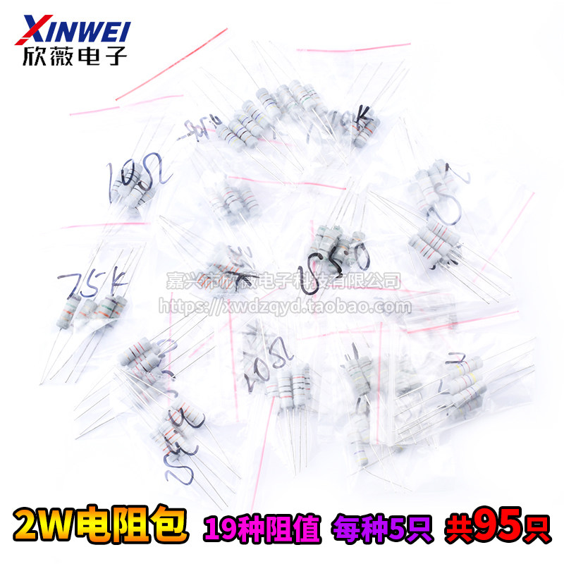 Компонентный пакет 2W Углеродная пленка Пакет 0,1Ω-150KΩОбычно используемое сопротивление 19 типов из 5 типов(95)