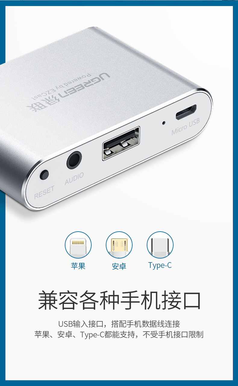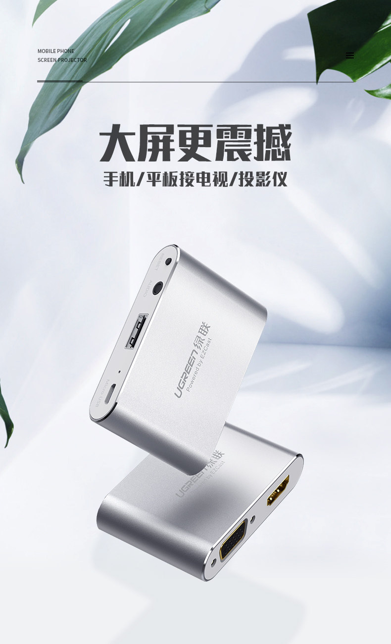 绿联 Подключение к мобильному телефону ТВ -конвертер такого же экрана проектора видео USB Rotor VGA SHOT SHICE Lightning для HDMI подходит для Apple iPhone/iPad Connector