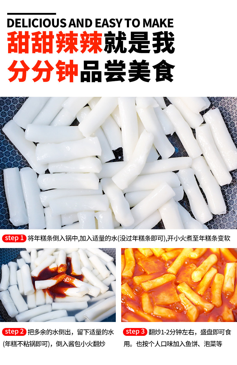 5 пакетов Бесплатная доставка Аутентичная парня в корейском стиле рисовый торт 500G Фаст -фуд Мгновенный продукт корейский острый жареный рисовый пирог горячий горшок ингредиенты