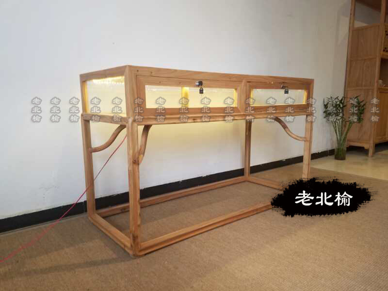 Старый вяз, новый китайский стиль, ювелирные украшения из цельного дерева, стеклянная стойка, витрина, журнал, установка лампы