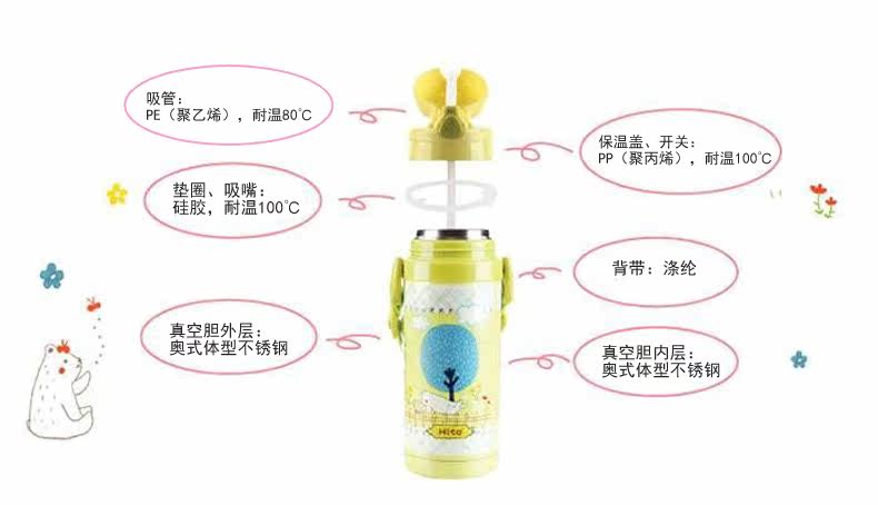 Портативный термос, детский чайник, портативная трубочка из нержавеющей стали, защита при падении