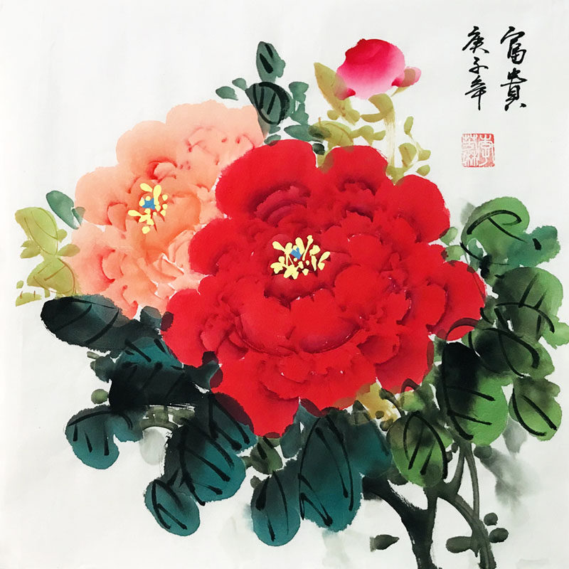 Специальные предложения рука -национальная живопись пиони, рисовать нарисование боковой цветок цветущий цветок богатые спальни.