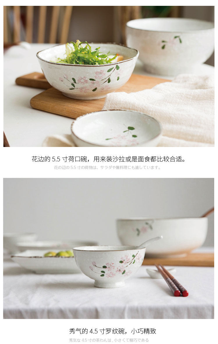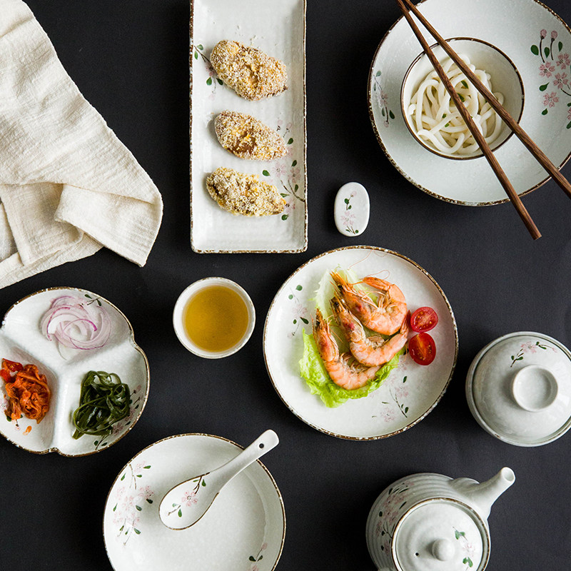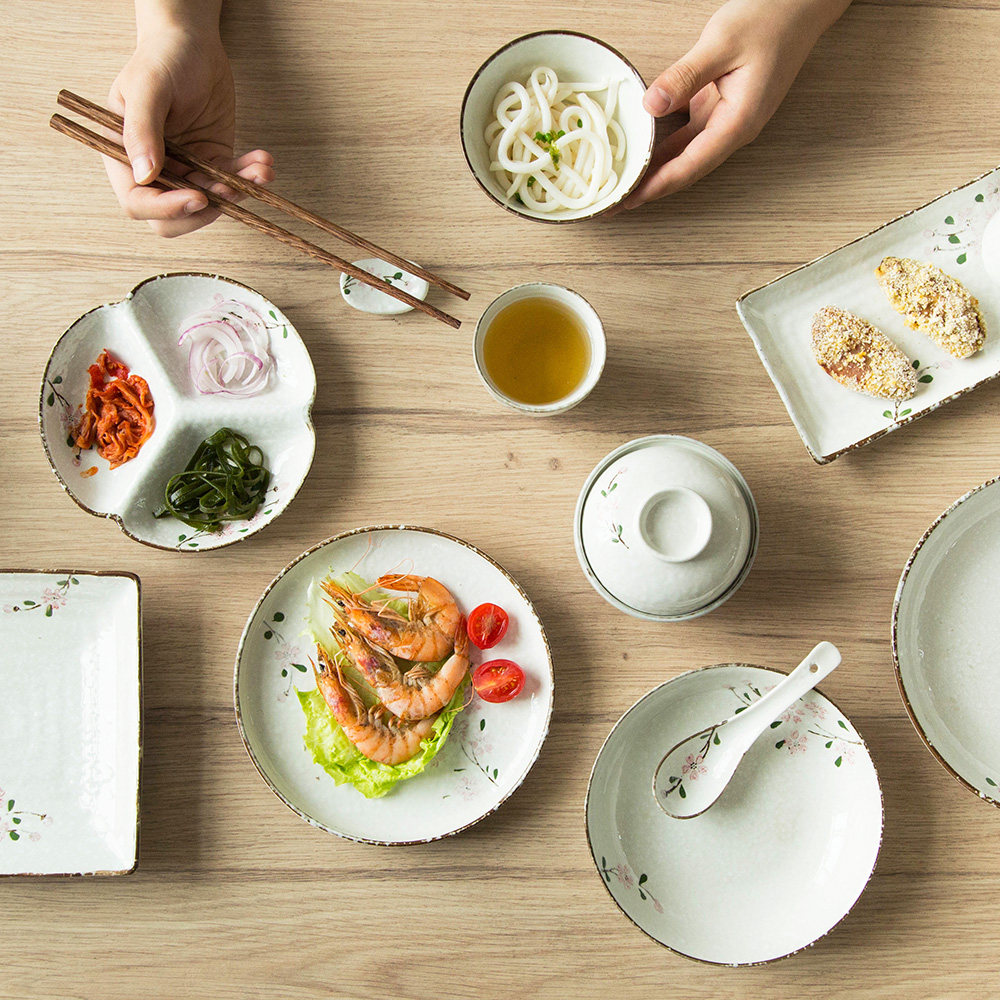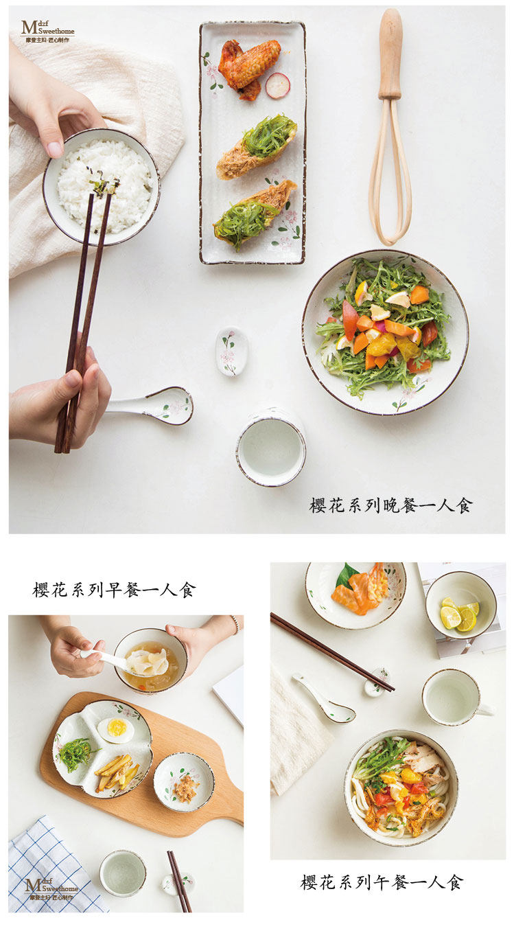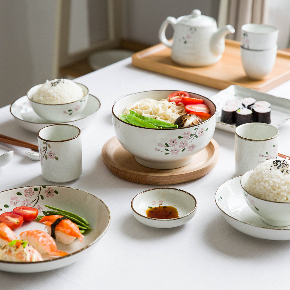 Современная домохозяйка японская вишня цветут один человек -личный набор домашней овощной тарелки рисовая чаша суп с лапшой керамическая посуда.