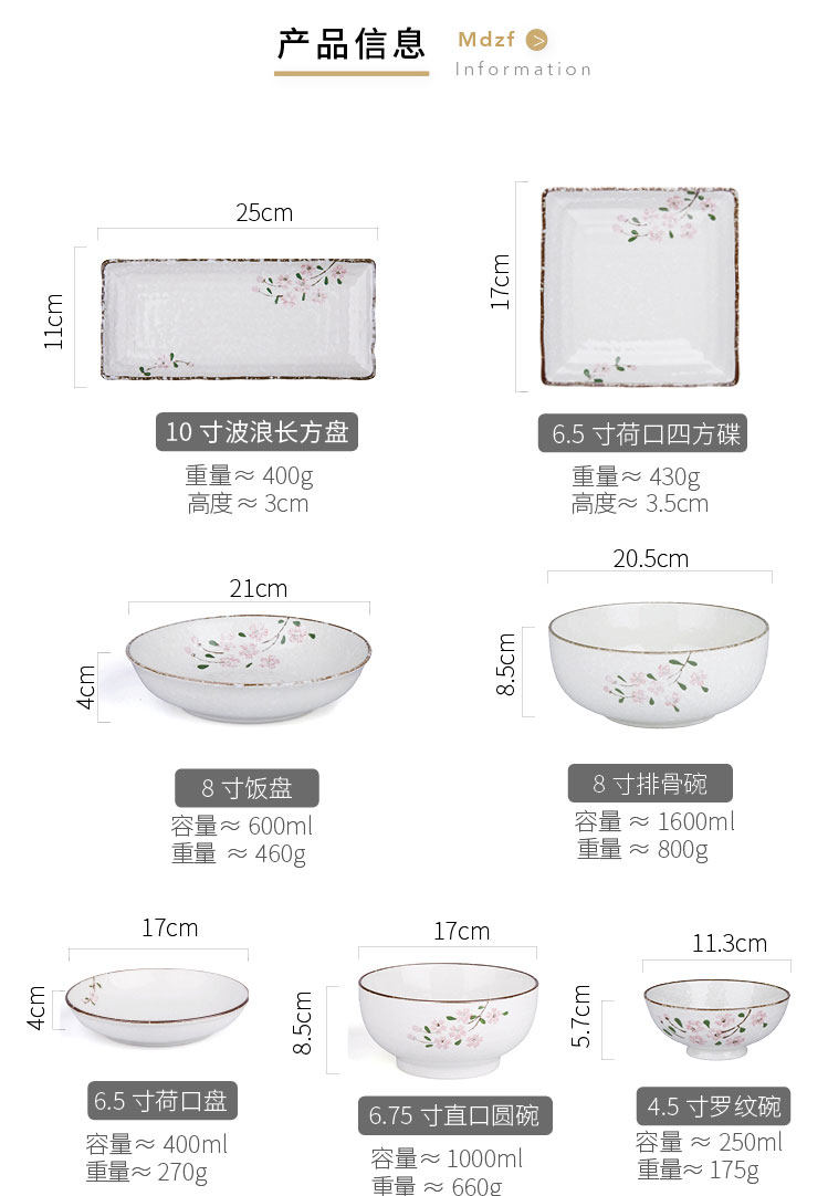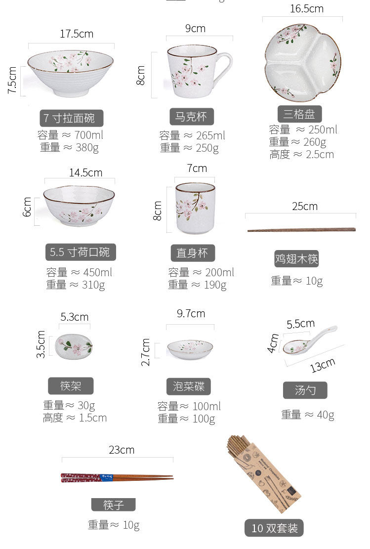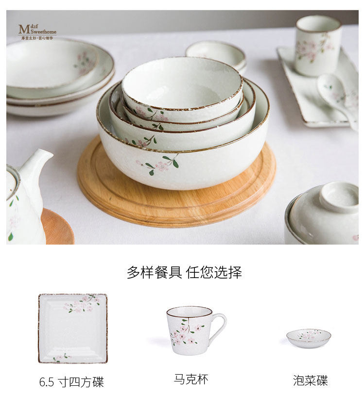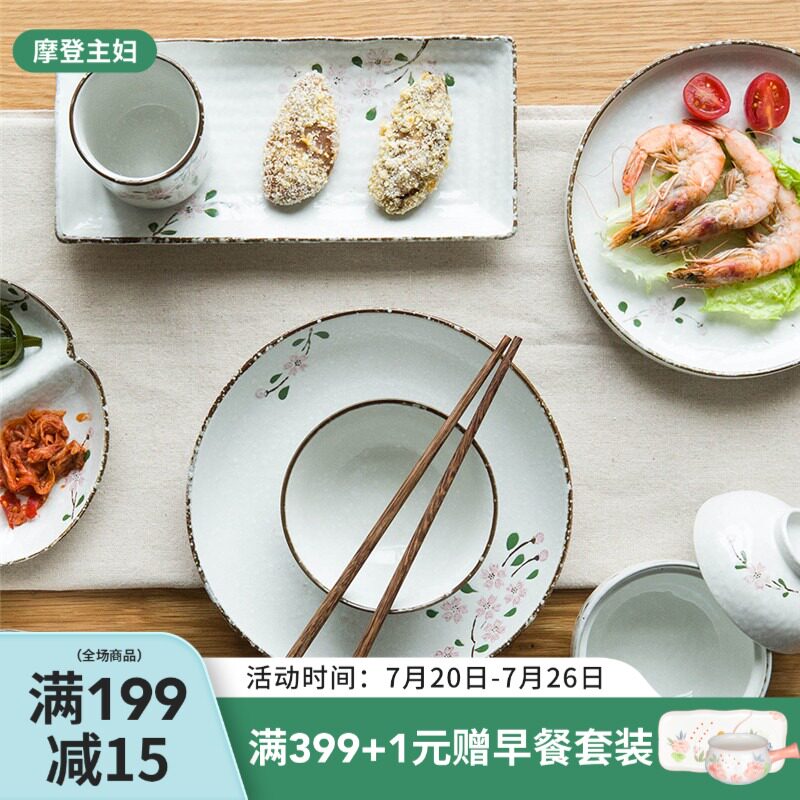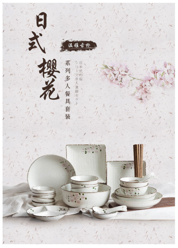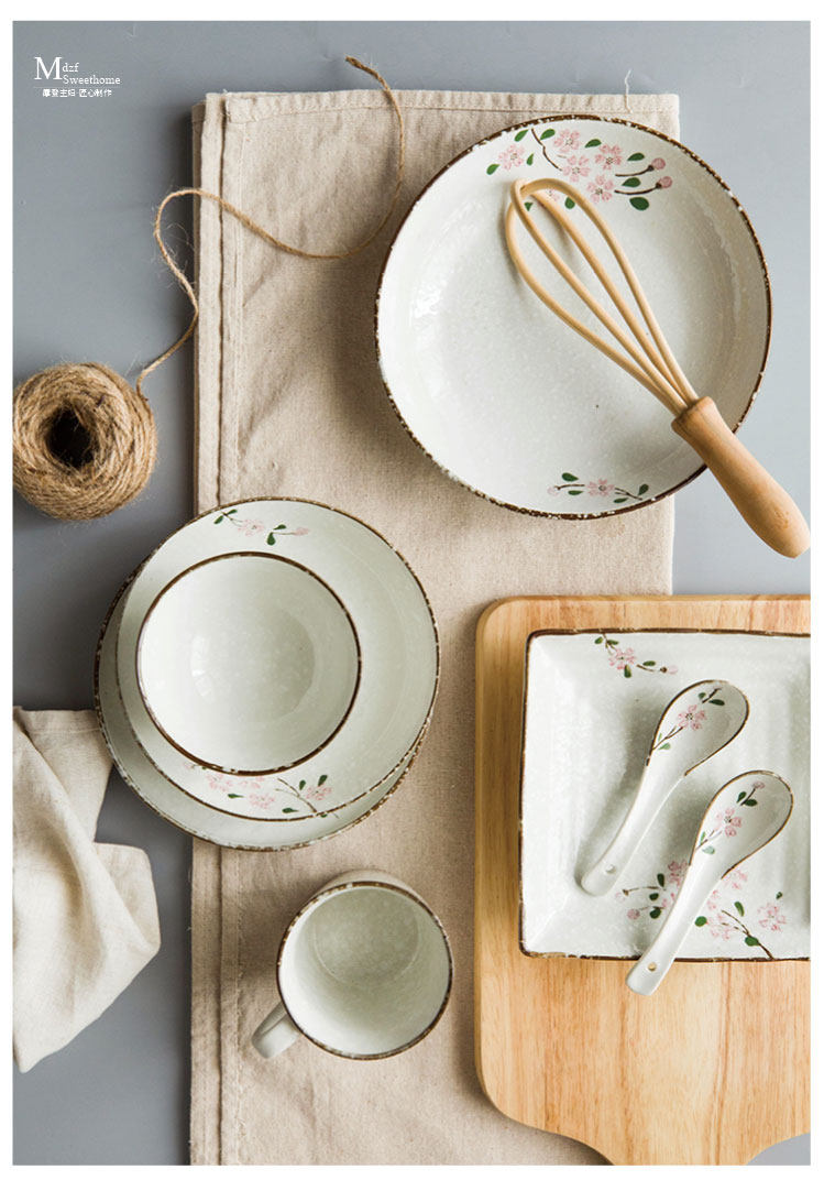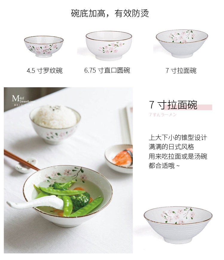 Современная домохозяйка японская вишня цветут один человек -личный набор домашней овощной тарелки рисовая чаша суп с лапшой керамическая посуда.
