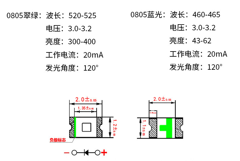 (20) 0805 Красный свет, белый свет, синий свет, оранжевый свет, зеленый светло -зеленый свет светодиодный светодиод