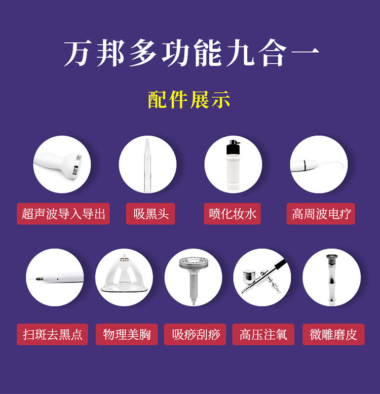Wanbang Многофункциональный инструмент красоты High Pay Electric Ultrasonic Ultrasonic Введение Широкий черный черный черный голова, вводящую в голову кислородную субда