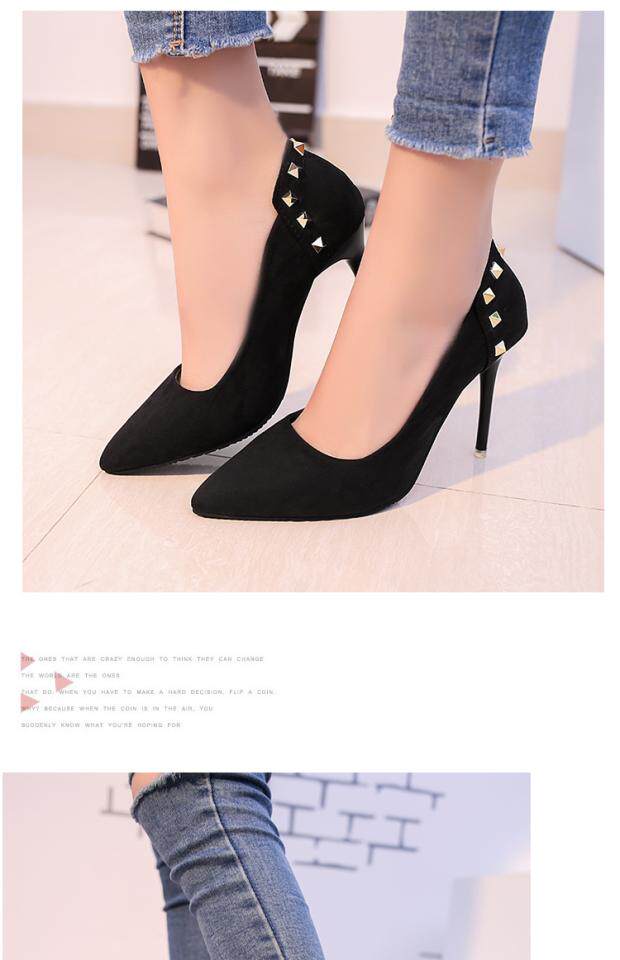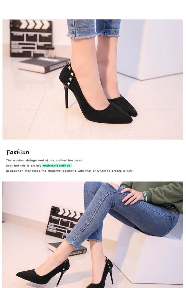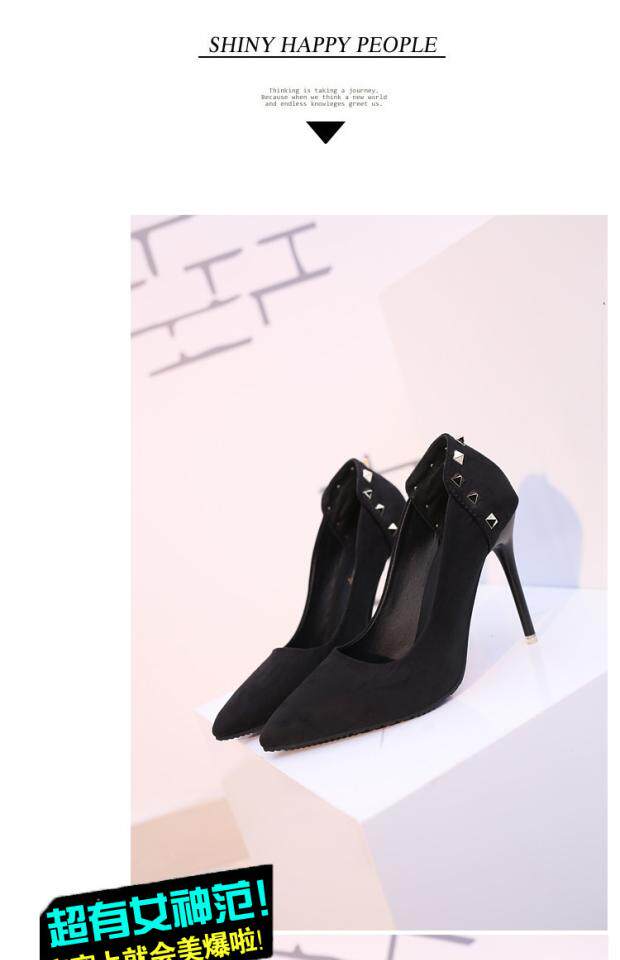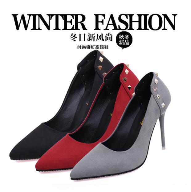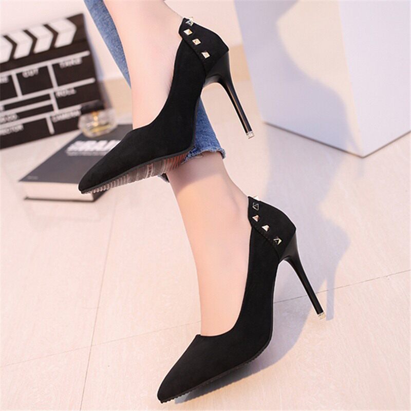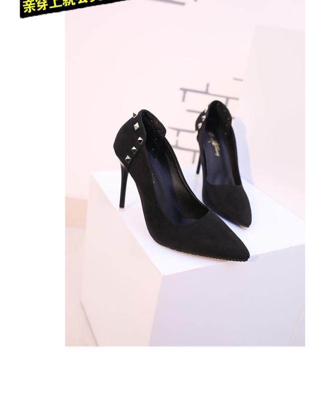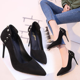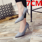 Сексуальные черные замшевые туфли на высоком каблуке с низким вырезом, 2018, европейский стиль