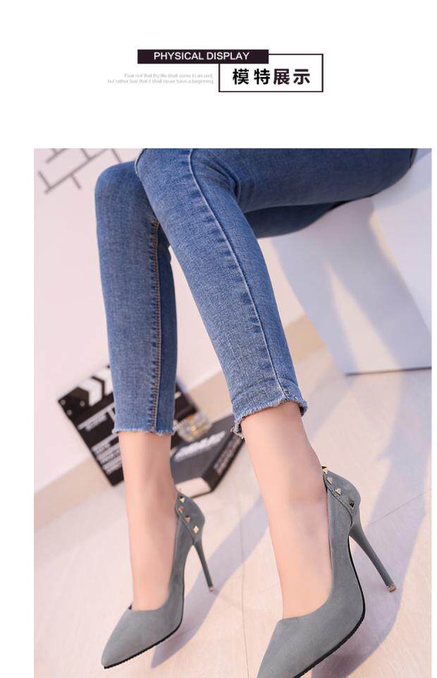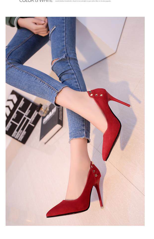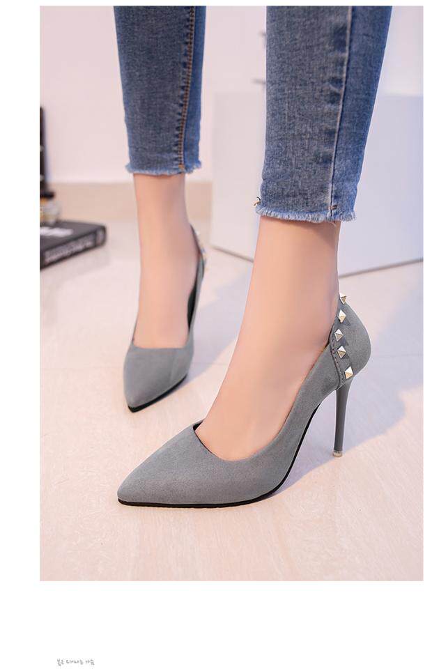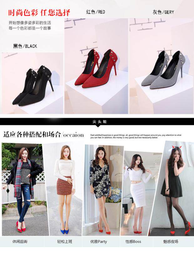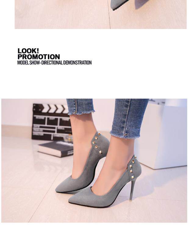 Сексуальные черные замшевые туфли на высоком каблуке с низким вырезом, 2018, европейский стиль