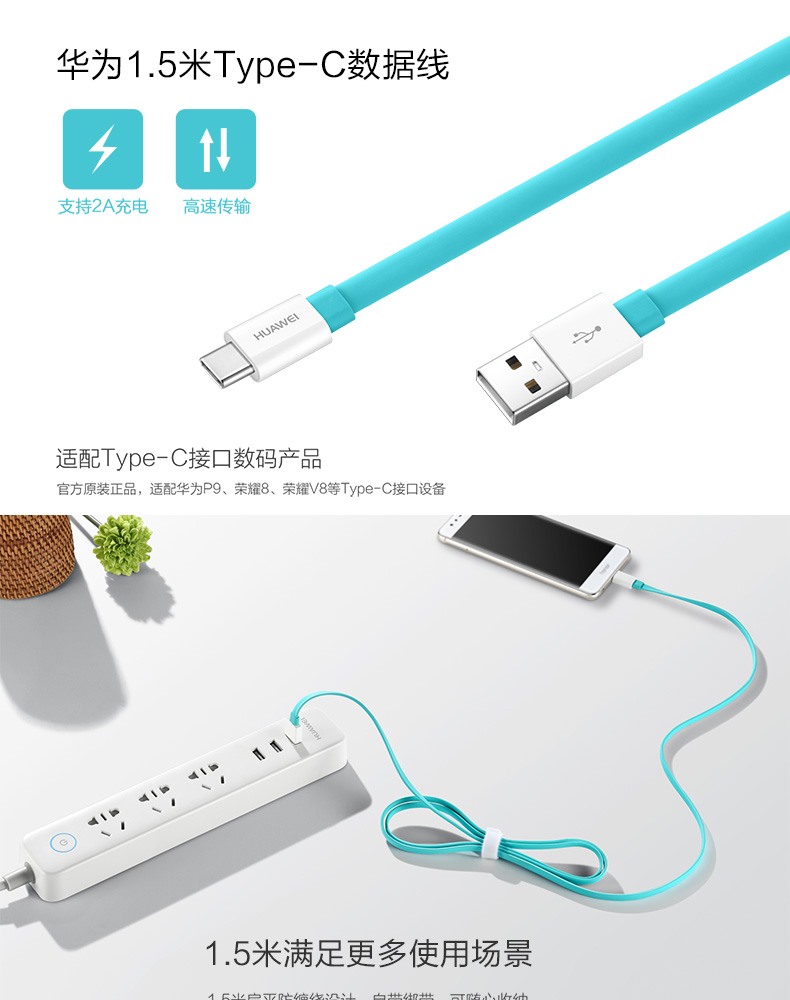 Huawei/Huawei Typec Data Cable 1,5 метра длиной AP55 Зарядка кабель Оригинальная подлинная подлинная поддержка 2A быстрая зарядка