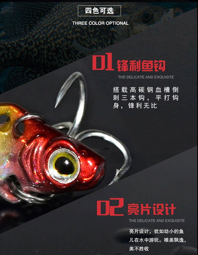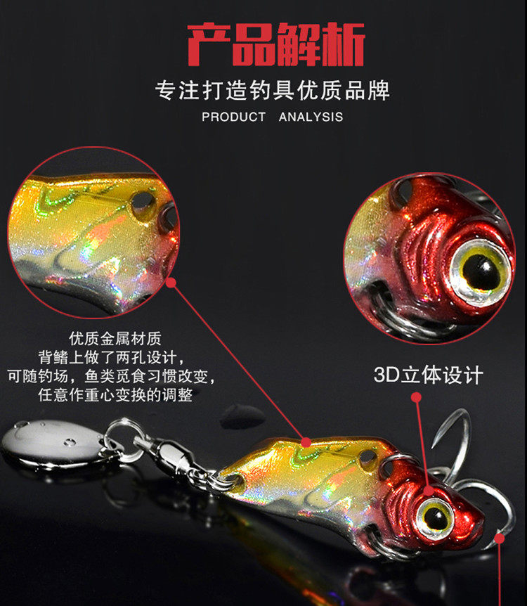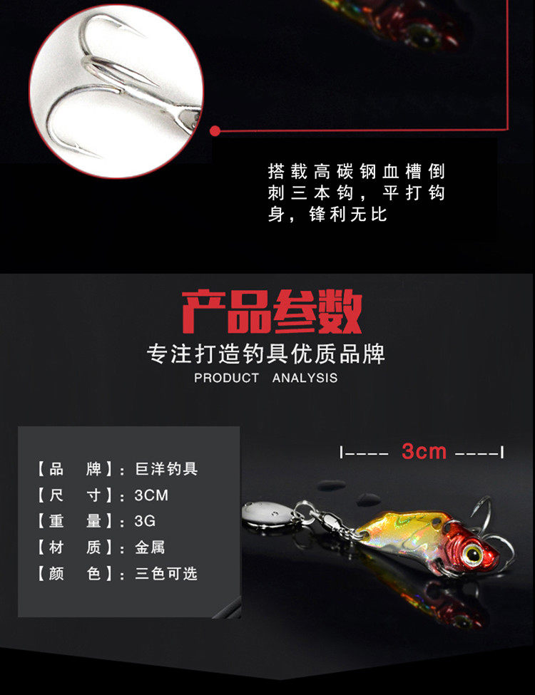 Juyang Mini Bass 3 грамма вращающихся блесток Luya Vib Luya Fake Bait Три, наполненные бас -басовыми басами, белые полосы
