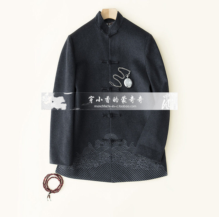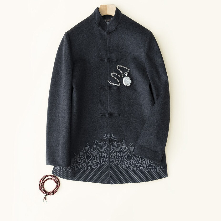 Демисезонная кашемировая ретро куртка, с вышивкой, китайский стиль
