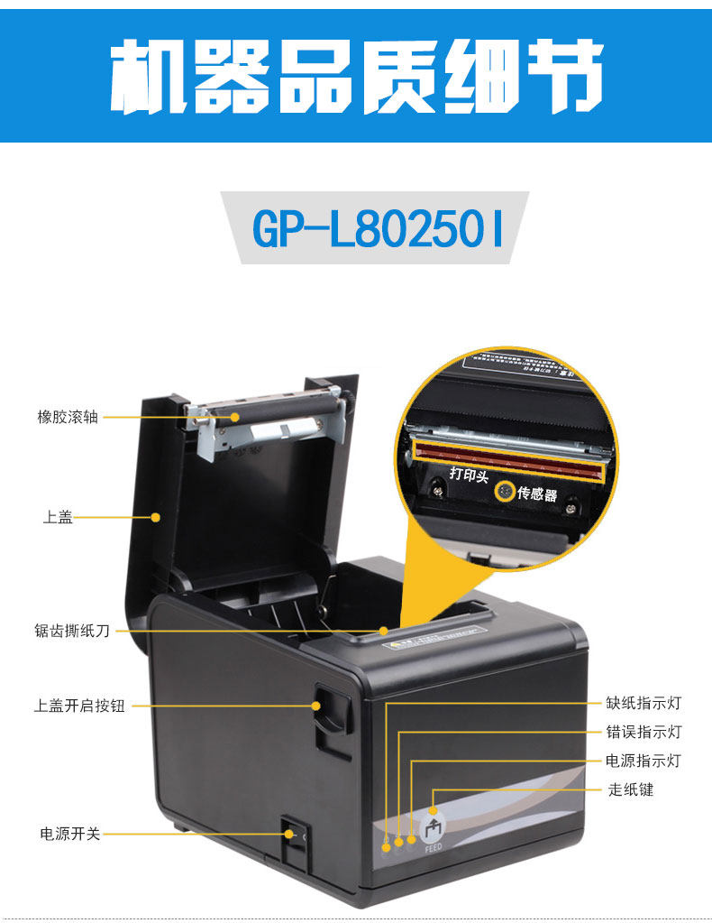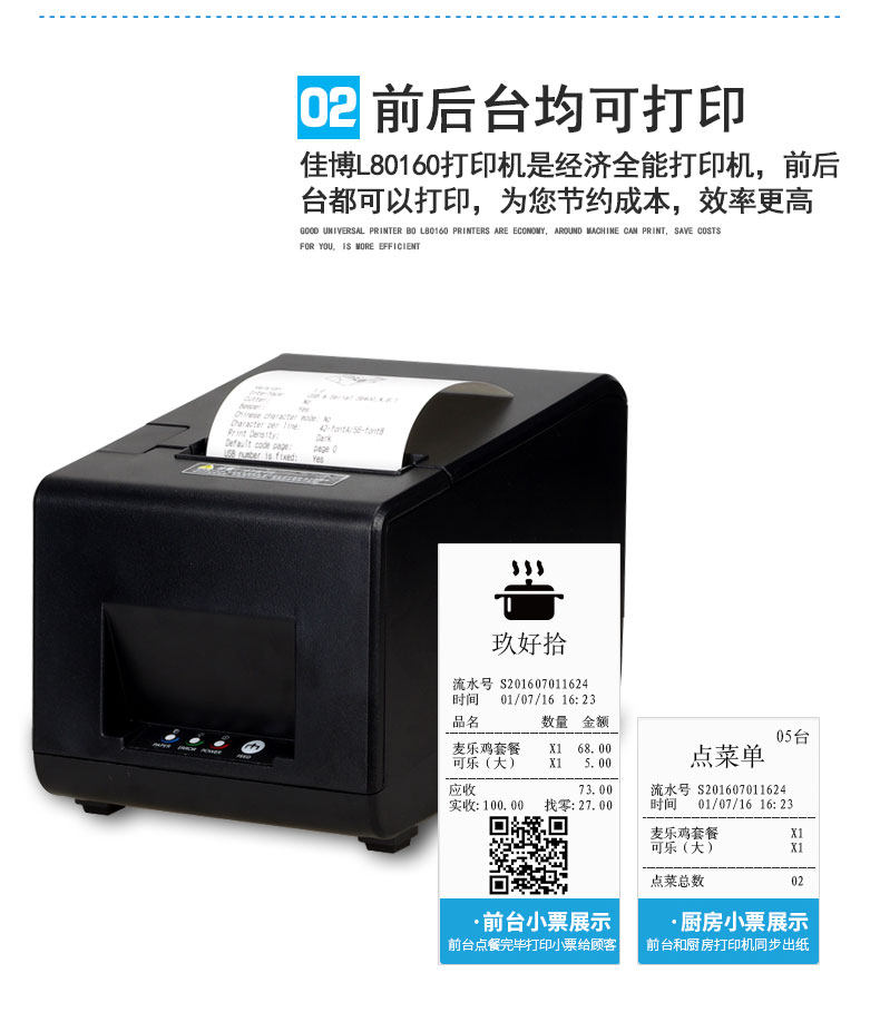 Jiabo gpl80160i Термическая чувствительность небольшой тиретный принтер 80 мм кухонная сетка с режущей ножом кассир