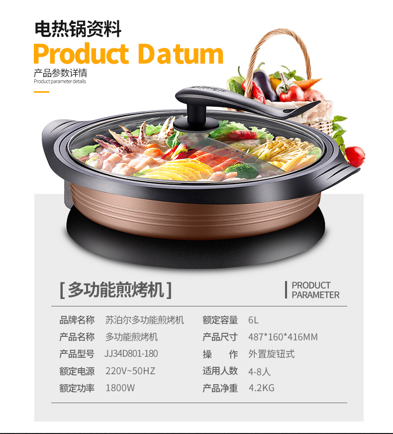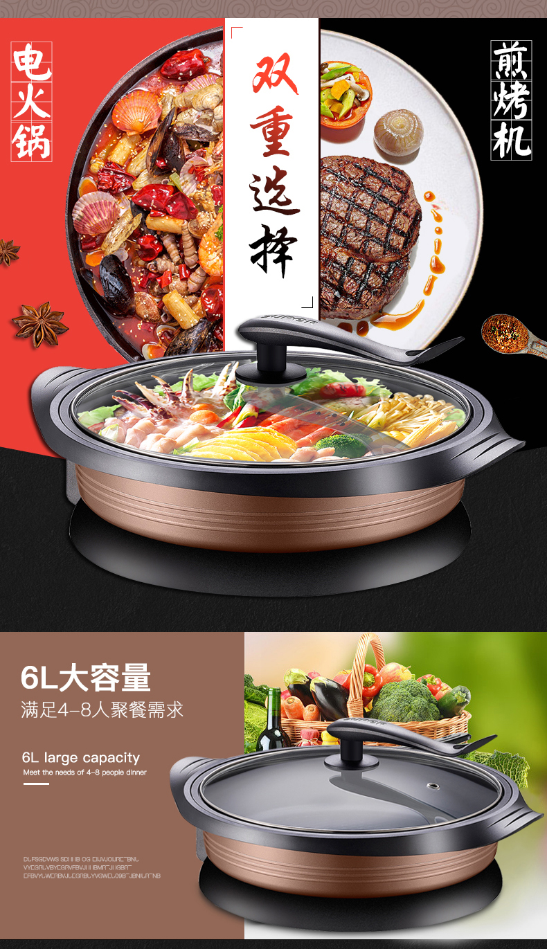 Supor Electric Hot Pot Многофункциональный электрический горшок с кастрюлем крупный электрический холодильный горшок с горшечным горлочным горлочным горло собой нежига