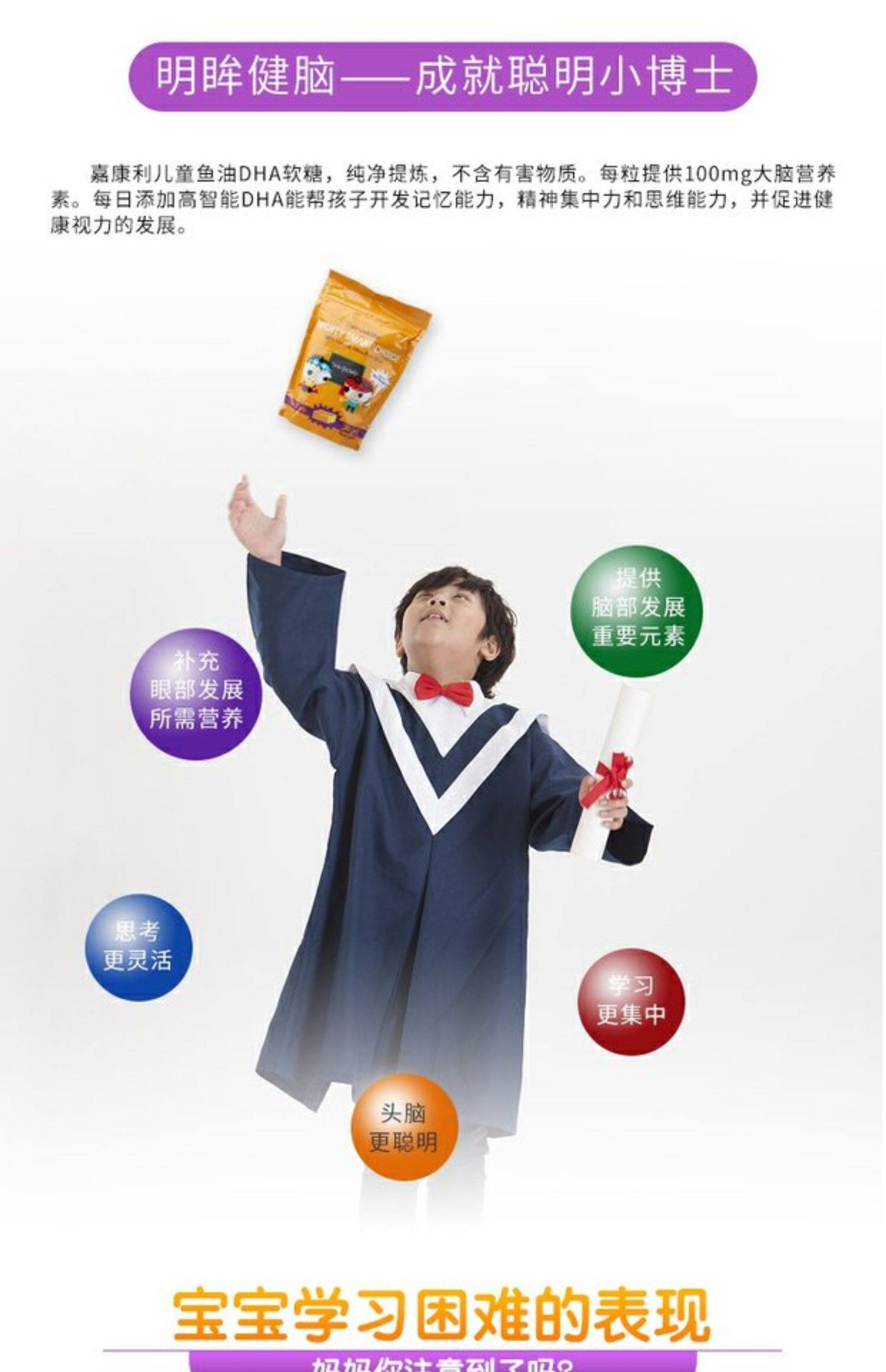 Дети Гаркики в Соединенных Штатах DHA Рыбное живое живое младенец младенец Учащиеся память мозг омега -3 питания кантон