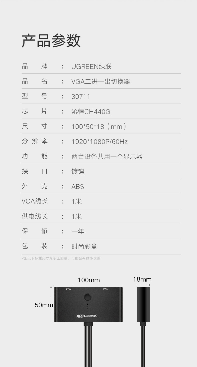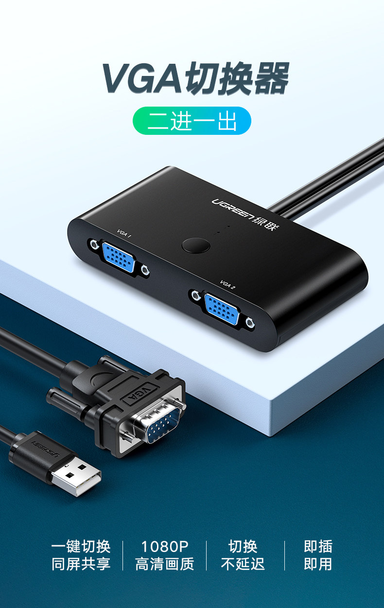 绿联 VGA Switch Two -IN -One -Out Two Compusters Shared Console Console Console Puns Videv Videy TV Video Dcorers 2 в -1 Outlet 1080p High -Definition Converter
