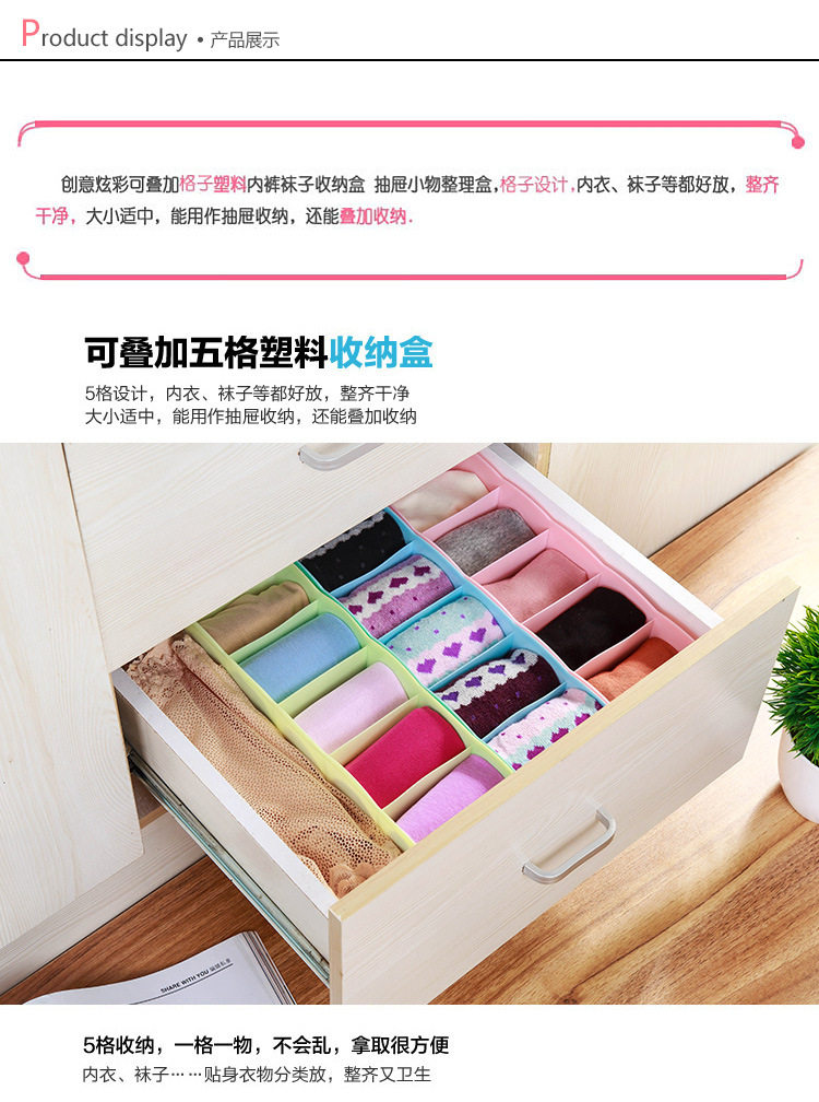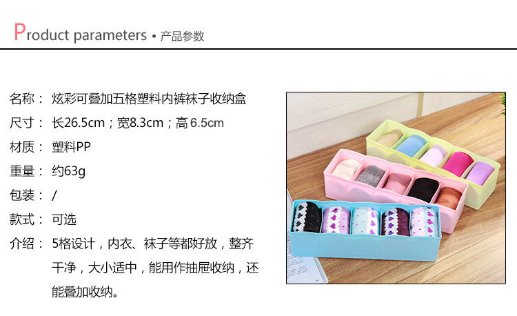 Универсальное нижнее белье, носки, коробка для хранения, увеличенная толщина, 5 ячеек