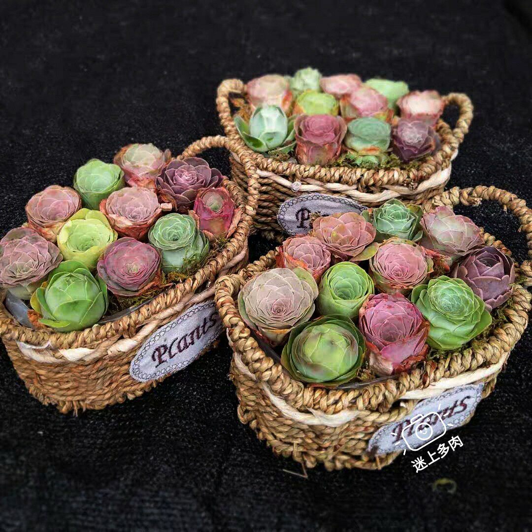 [Творческий подарок] Серия горной розы сочные горные растения Комбинированная цветочная корзина подарочная коробка с горшечными растениями, легко доставить с горшками