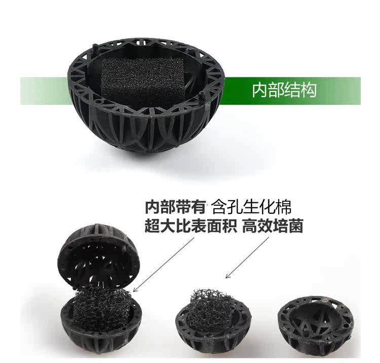 Биохимический мяч - это новый биохимический фильтр, который имеет сложную вогнутую текстуру на ее поверхности.Когда капли воды текут с поверхности биохимического шарика, капли воды изменят направление вдоль вогнутого, войдут в вогнутый тракт следующего биохимического шарика и снова изменят направление.Следовательно, процесс капель воды через биохимические шарики значительно удлиняется, увеличивая время нитрифицированных бактерий.Внутренний платный биохимический хлопок высокого уровня увеличивает площадь поверхности с большим количеством пищеварительных бактерий, чем обычные биохимические шарики.Больше чистой воды.