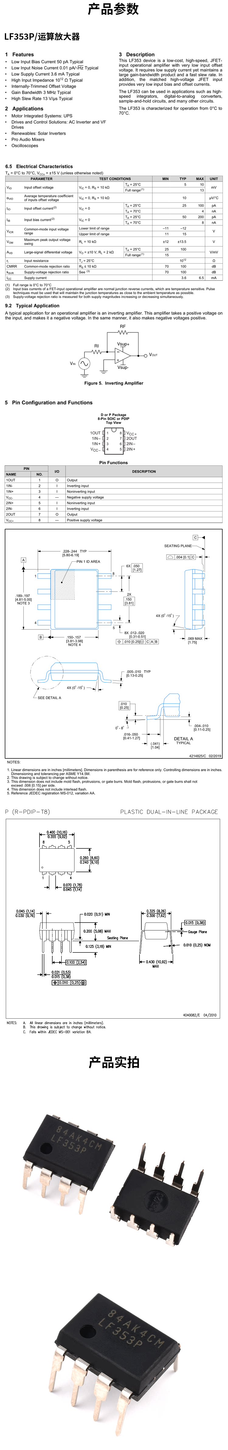 Новый оригинальный прямая плавка LF353P Чип Двойной усилитель JFET DIP-8 подлинный