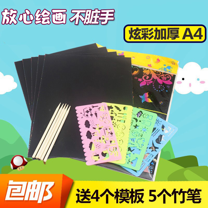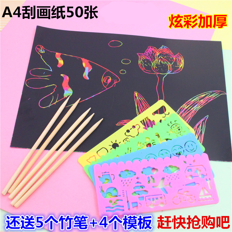 Бесплатная доставка Детская красочная царапающая бумага 50 100 кусочков DIY ручной работы A4 8K Scrainting Paint
