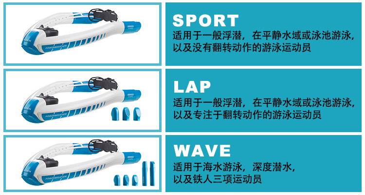 Ameo Powerbreather WAVE: Применимо кБассейны, спокойные или волнистые воды.Эта модельОборудован волновой шляпой и трубой длинной воздушного типа,Подходит для трех предметов и бесплатных спортсменов.