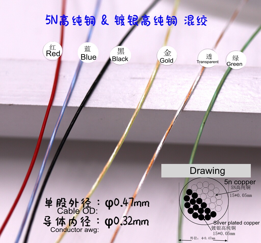 OD: φ0,45 мм монокристаллический OCC и серебряный монокристаллический медный серебряный кабельный гарнитура