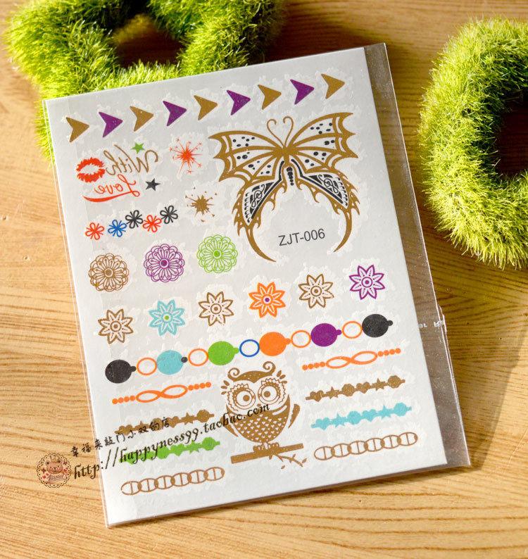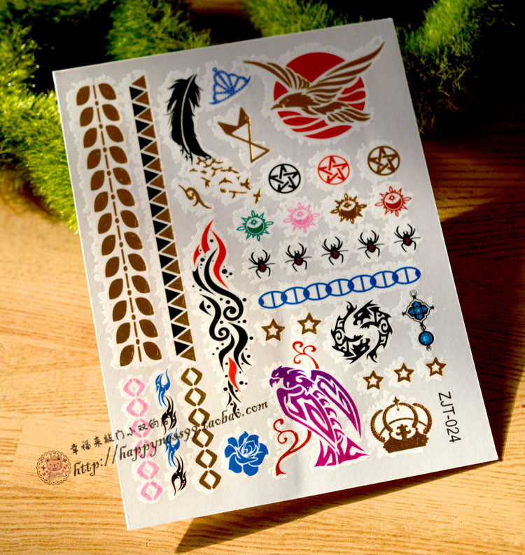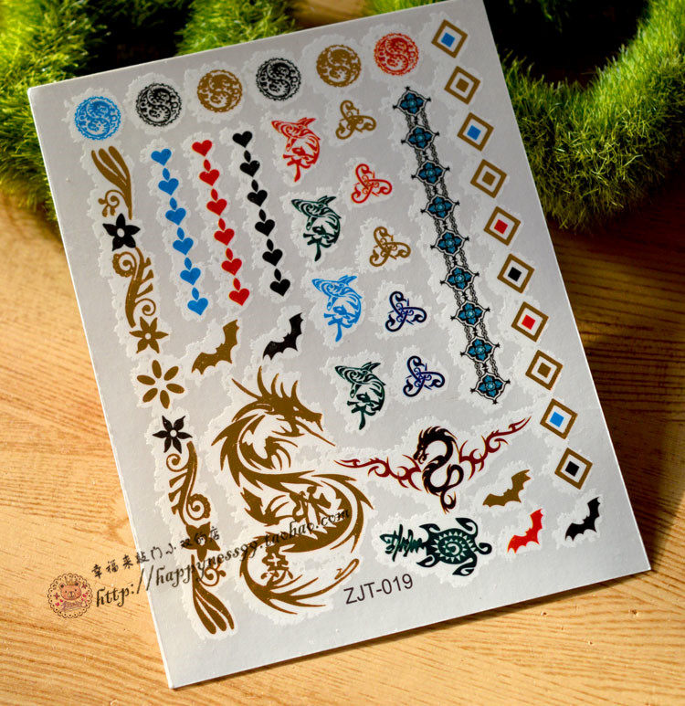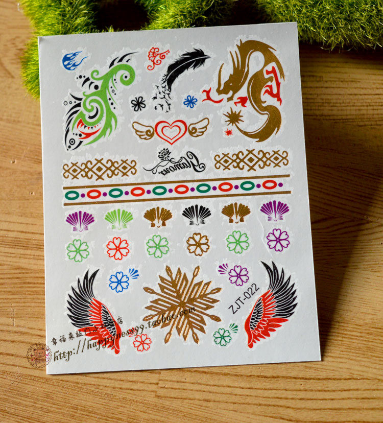 Тату наклейки, комплект, 9x, 12см, 4 цветов
