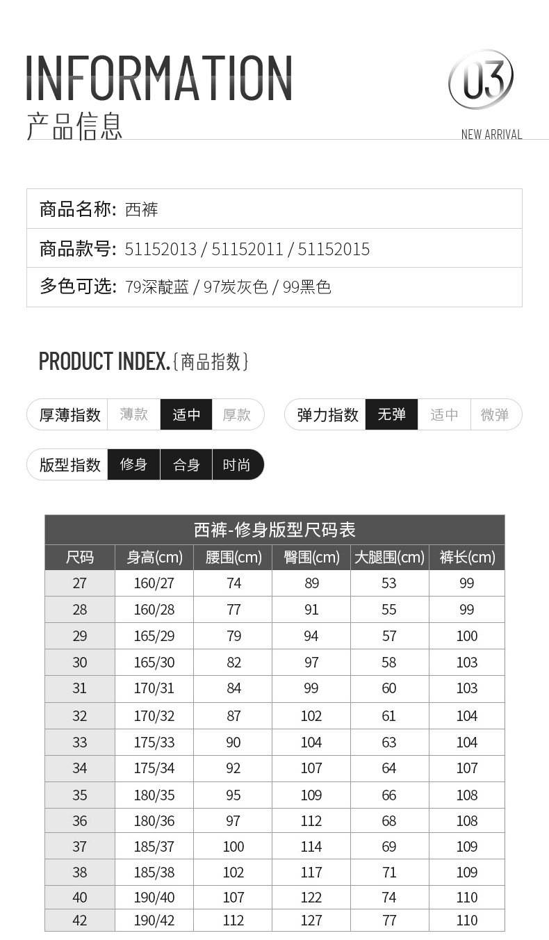 | Размер: | 28/160 (окружность талии 77), 29/165 (окружность талии 79), 30/165 (окружность талии 82), 31/170 (окружность талии 84), 32/170 (окружность талии 87), 33/175 (окружность талии 90), 34/175 (окружность талии 92), 36/180 (окружность талии 97), 38/185 (окружность талии 102), 40/190 (окружность талии 107) |