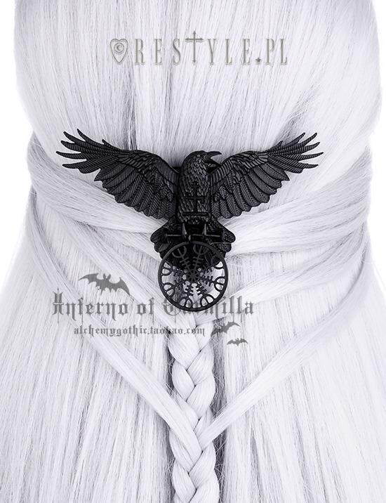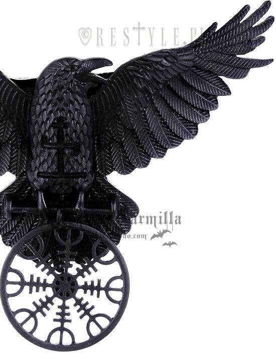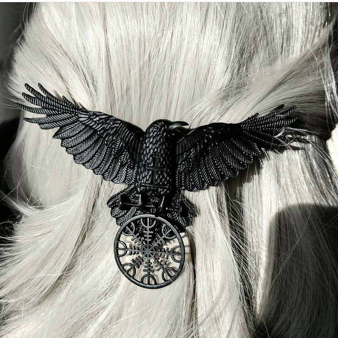 This beautiful hairclip presents черная ворона с выгравированной исцеляющей руной. В своих когтях он держит шлем благоговения эгишьялмур.
