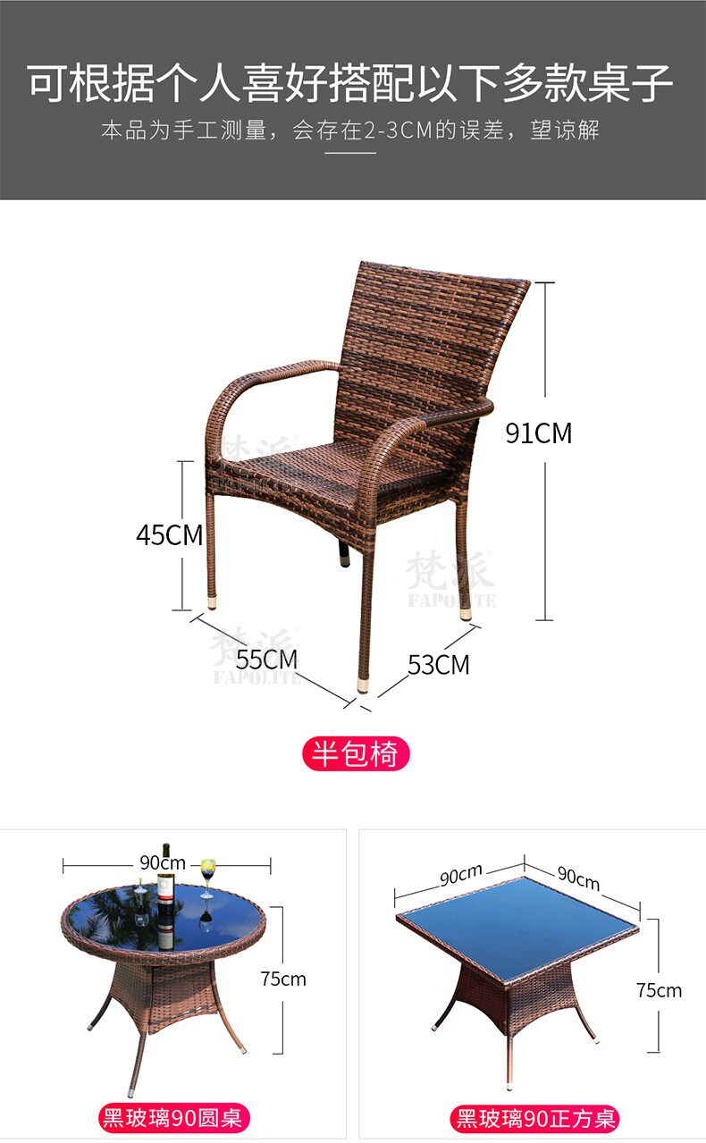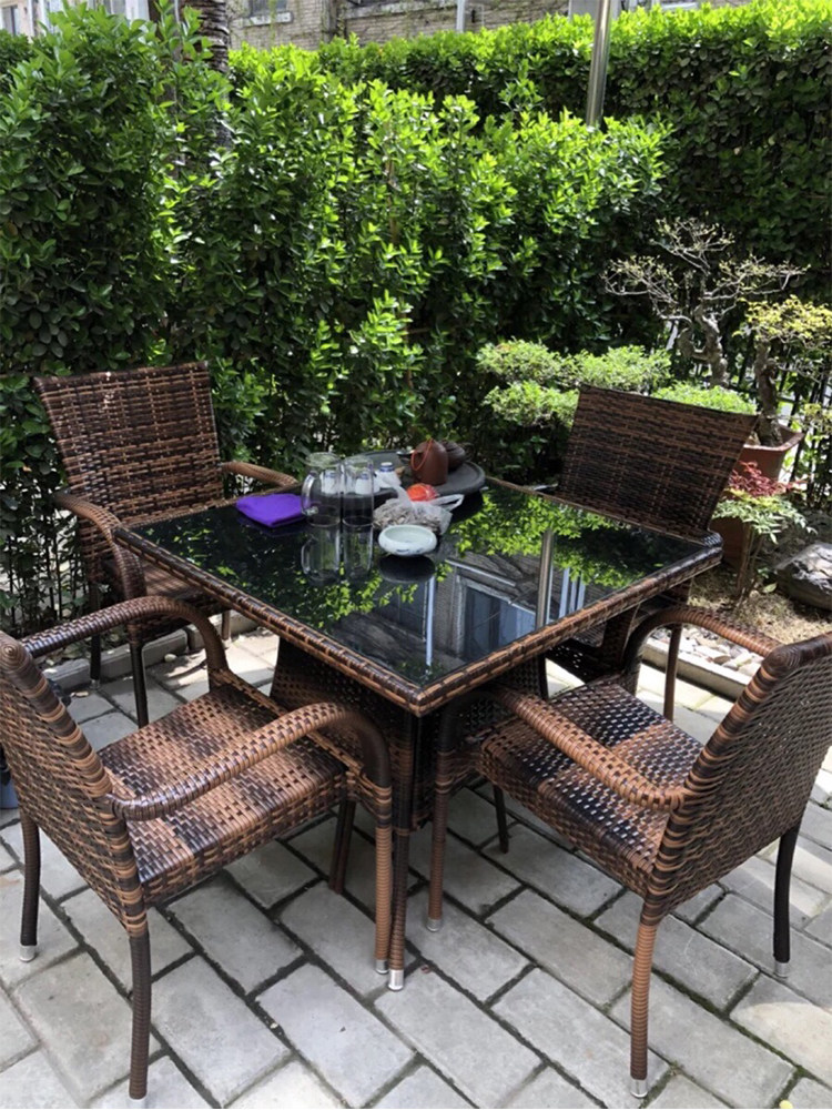 Стул для лозы, открытый стол и стул с комбинацией зонтиков, небольшая квартира, ротанга, повседневное кресло для чая, на открытом воздухе садовый двор и кресло