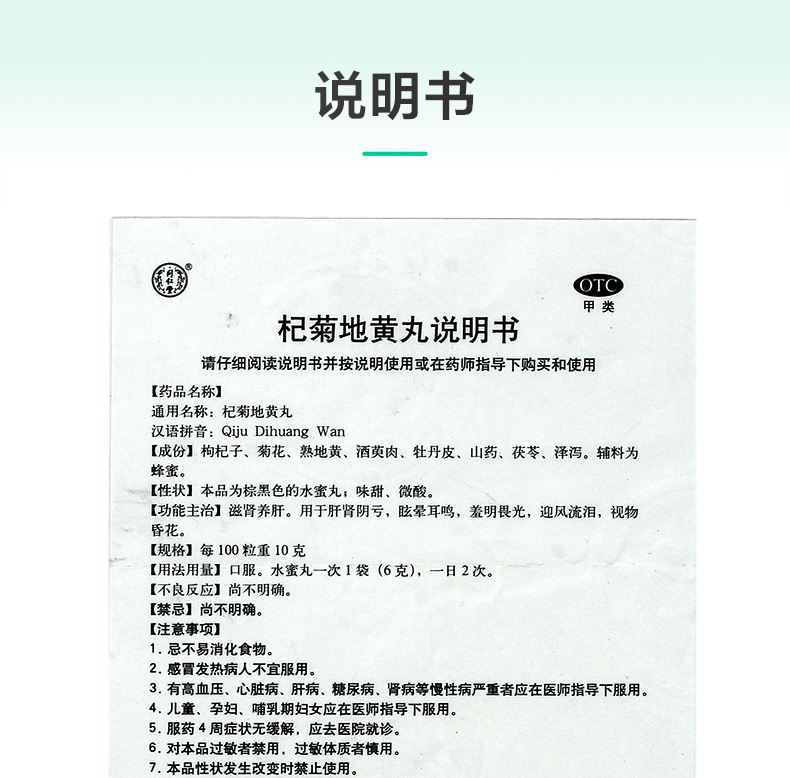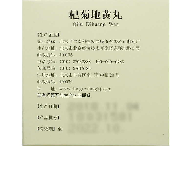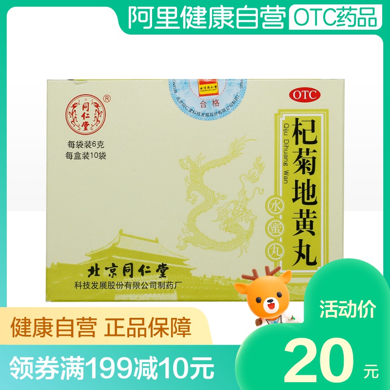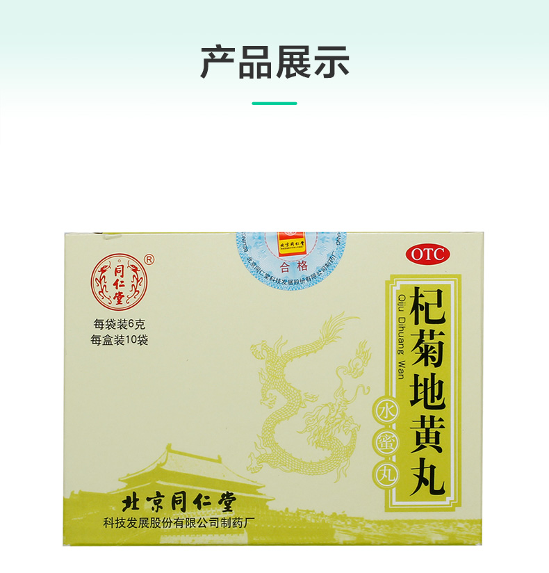 同仁堂 Qiju Dihuang Pill 6G*10 мешков/коробки питает уход за печенью, печень, потерю почек печени, головокружение, головокружение, шум в ушах, потерю инь в почках