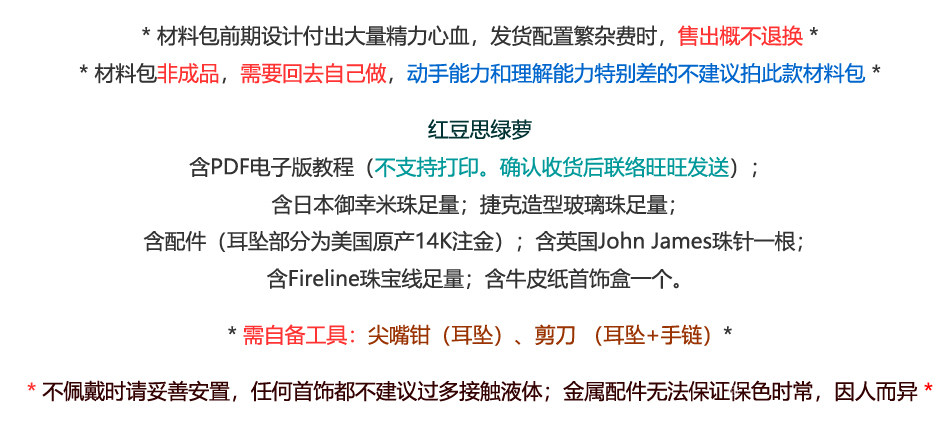 | Цвет: | Пара материалов пакетов с серьгами (нужно самостоятельно сделать учебник, Браслет, набор материалов, диаметр/размер 17.5, Примечание: вам нужно сделать это сами (в графическом учебном пособии нет видео |