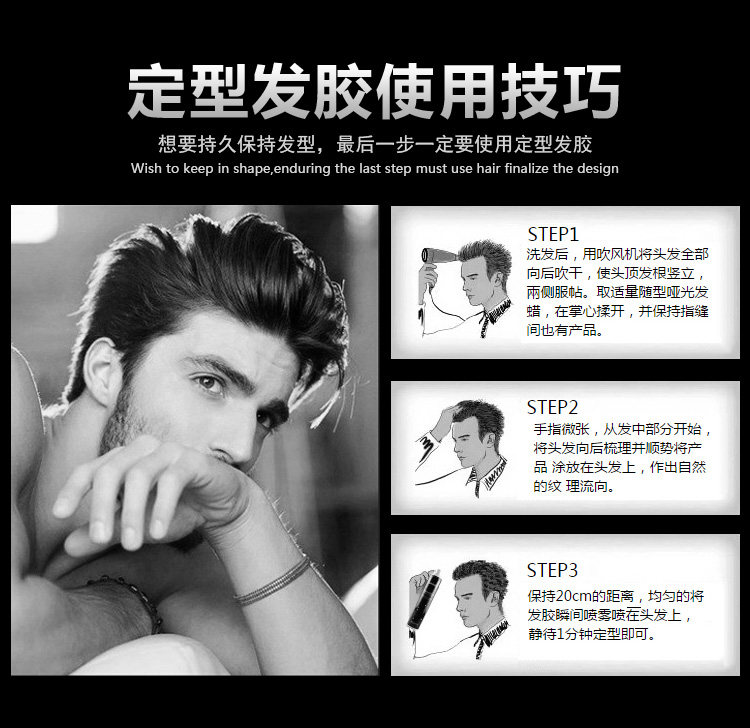 Лак для волос без запаха с сухим распылением, мужской гель, долговременный эффект, придает объем