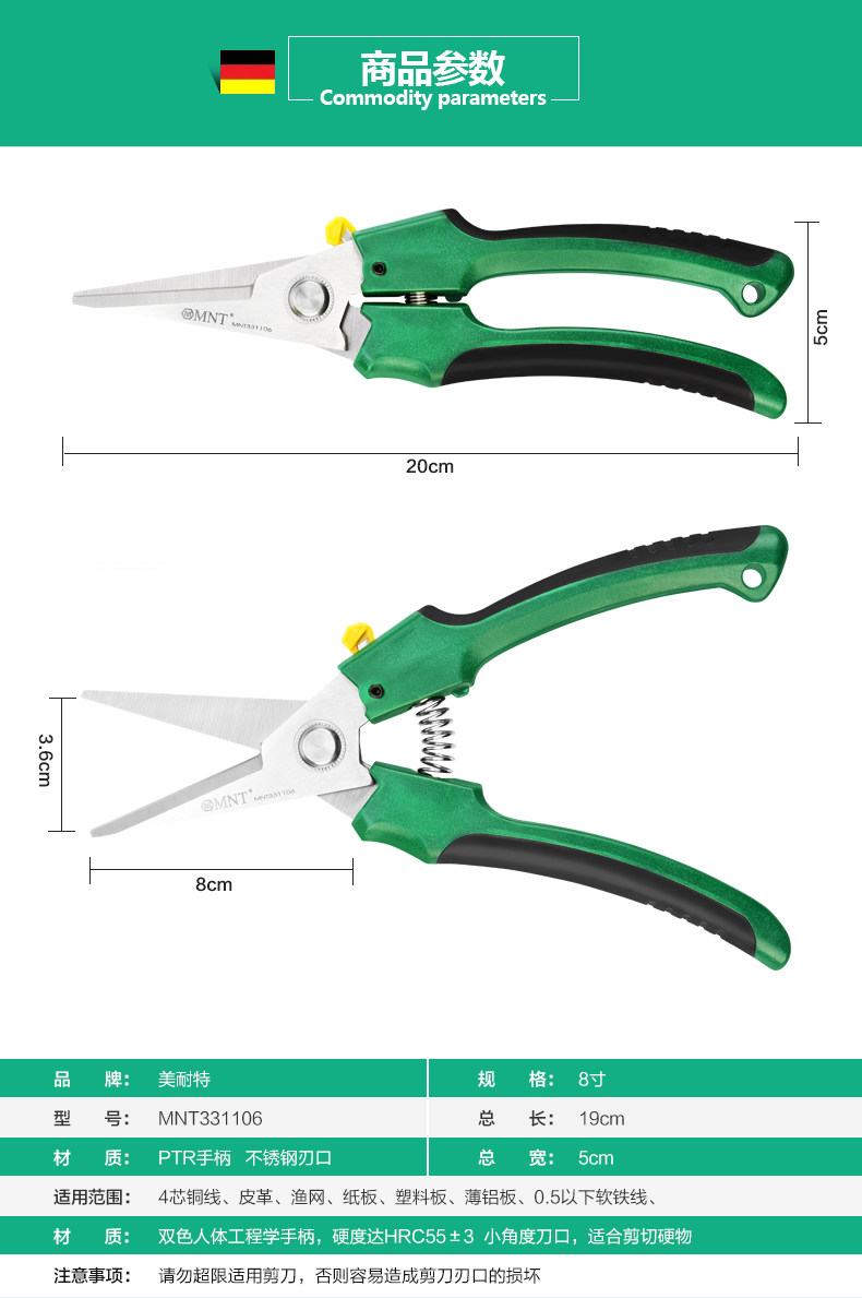 Германия Meineter® ножницы из нержавеющей стали промышленность электронная электронная кабельная лот -слот срезан.