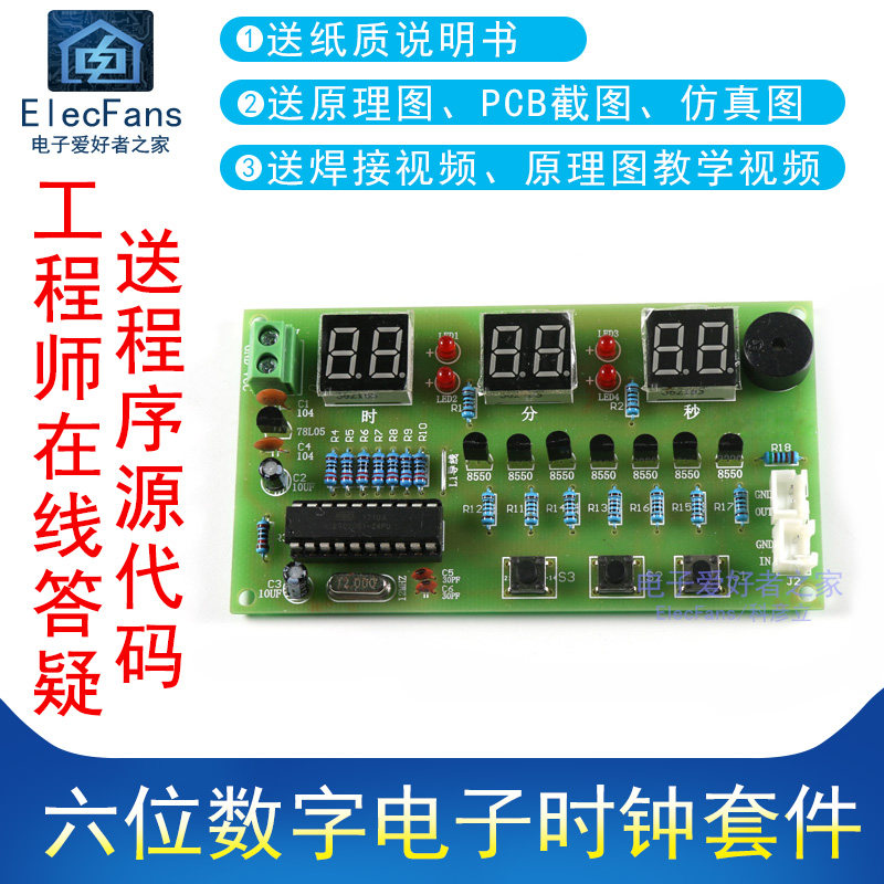 (Продажи) Шести -дигитный часовой комплект Электронные часы at89c2051 Одно -хип -микрокомпьютер E -ENTHUSIAST'S HOME