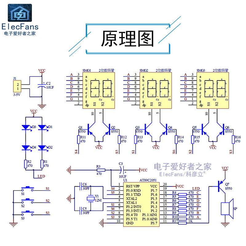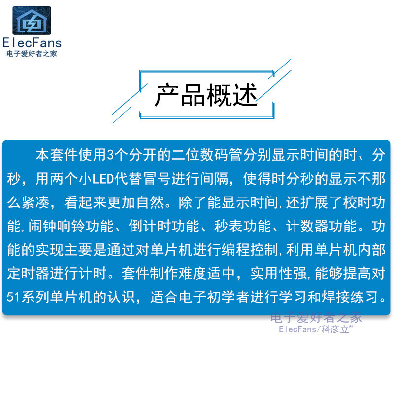 Этот набор однознавного микрокомпьютера AT89C2051 был записан в программу часов, и он используется для его использования без отладки.В основном он используется для электронных энтузиастов.